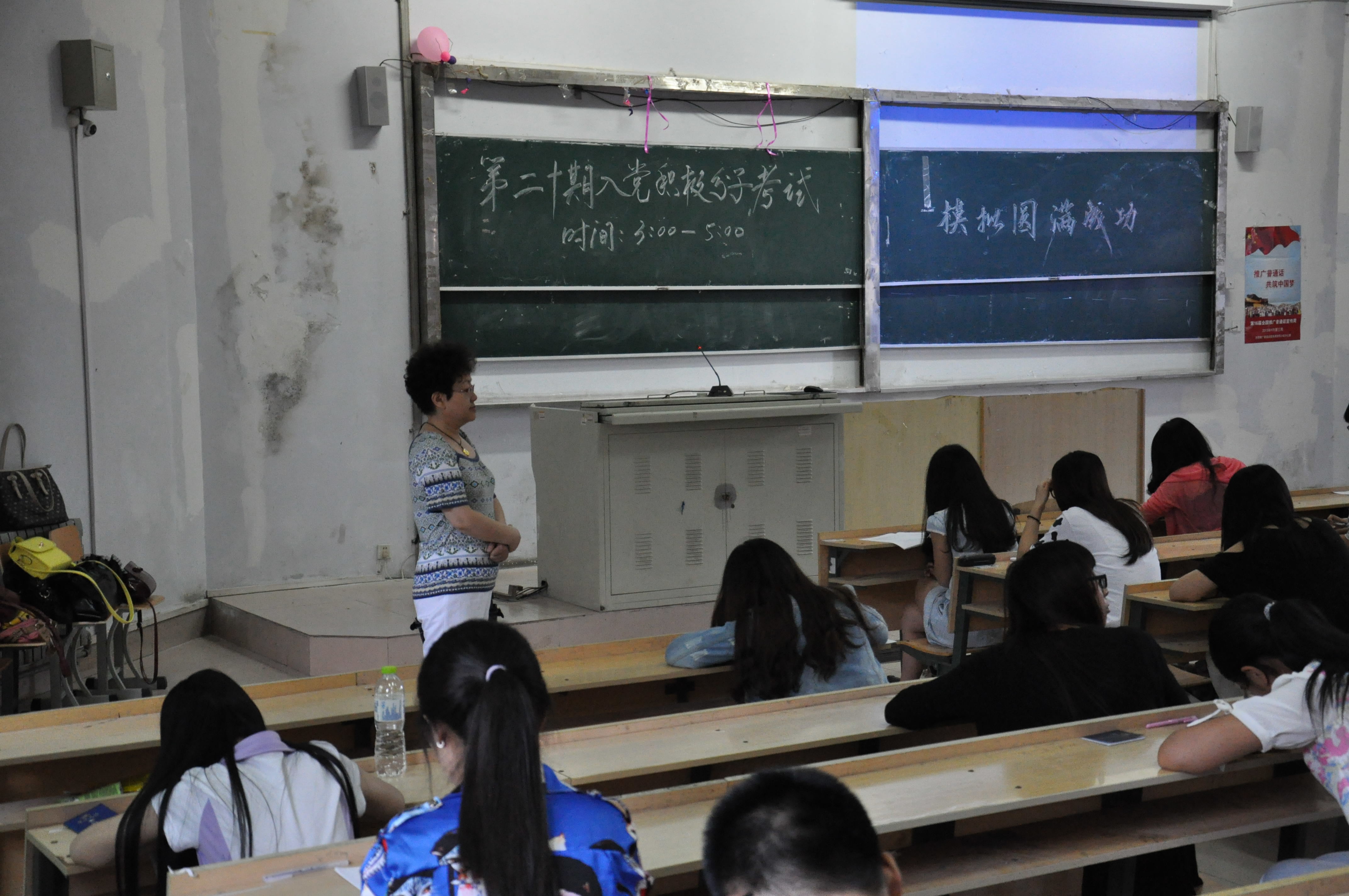 6月7号下午,潍坊学院第十三届入党积极分子培训结业考试在7217教室进行,由任秀洁主任担任此次考试的监考老师,弘德书院学生会副主席谭炀等人也参与监考,弘德书院组织培训部的成员也在考试中担任相关服务工作。此次考试前,主任就明确指出在考试过程中要严肃考纪,坚决不允许作弊抄袭现象的发生。文学与新闻传播学院共32人参与了此次党课结业考试。
