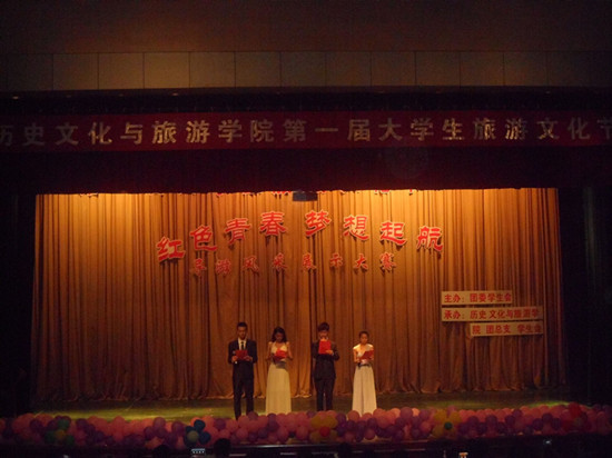 于5月27日晚七点,由历史文化与旅游学院承办的导游风采展示大赛在图书馆报告厅拉开帷幕。本次导游大赛经济管理学院派出毕晓东同学参,毕晓东同学凭借突出的表现能力,不仅赢得了在场同学阵阵的掌声,也取得了优异的成绩。
