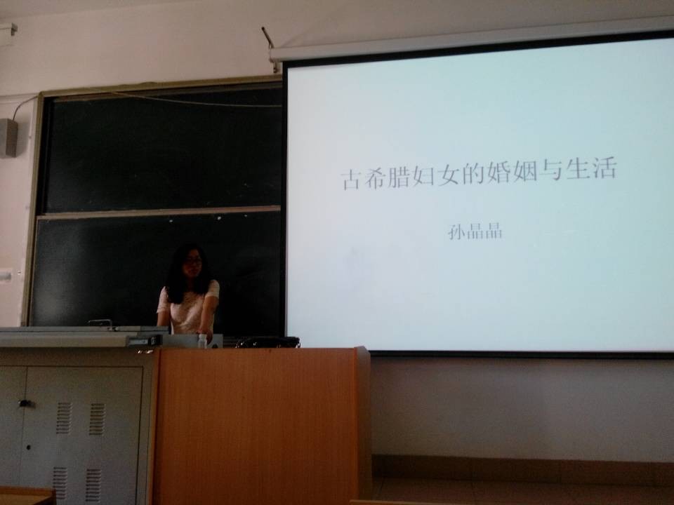 为了拓展同学们的历史知识,丰富同学们的课余生活,2014年5月26日下午2点半,由历史文化与旅游学院孙晶晶老师主讲的以“古希腊妇女的婚姻与生活”为课题的知识讲座在人合楼8426教室顺利开展。