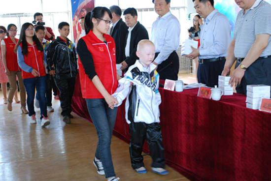 活动顺利完成后,志愿者们又拉起盲童的手,做他们的眼睛,把他们带回教室去,一路上细心呵护,“小心点……注意台阶……别着急……”陪着他们慢慢地走回教室,走向爱和光明的殿堂。