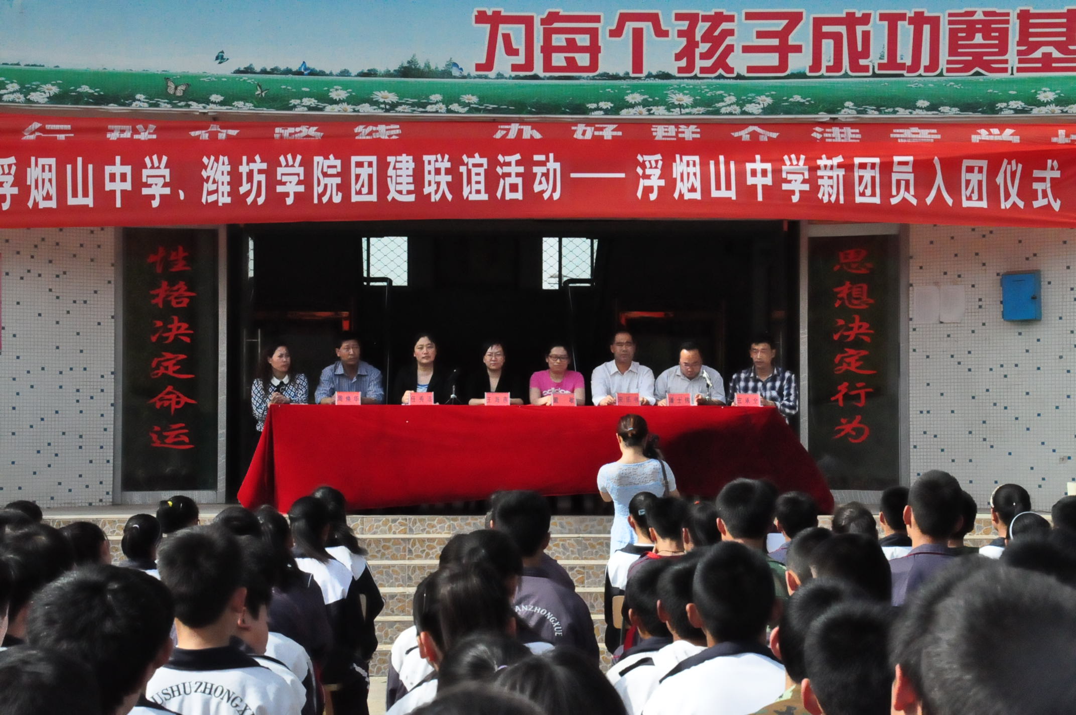 仪式首先由浮烟山中学校长宋乐书致欢迎辞并宣读了浮烟山新团员成员名单,随后为新团员发放并佩戴团徽,新老团员上台发言,任秀洁老师勉励新团员做好带头作用,释放年轻人的活力为团建工作发挥自己微薄之力。