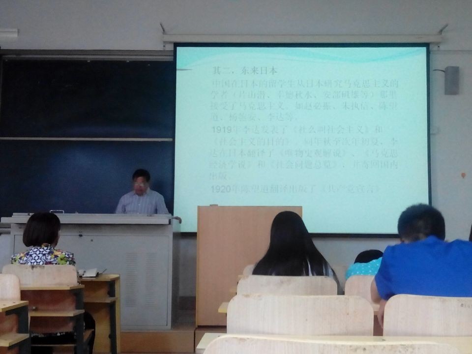 5月16日下午15:00,关于“近代中西方文化的融通与马克思主义思想的传播”的讲座在8424教室正式开始,此次讲座的演讲人是来自青岛大学的王令金教授,出席这次讲座的领导有历史文化与旅游学院副院长秦瑞鸿、辅导员办公室副主任鲁春晓。历史文化与旅游学院2012级、2013级的部分同学参加了此次讲座的听讲。