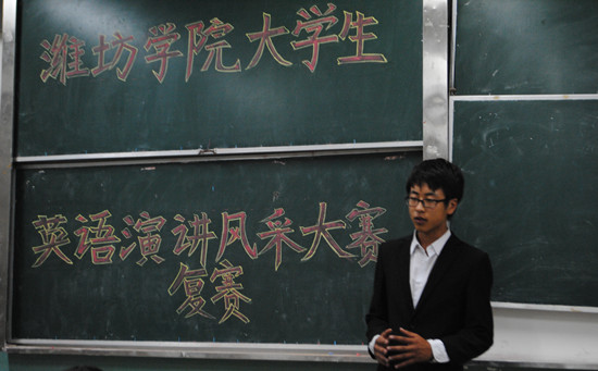 2014年5月20日,潍坊学院外国语学院3233教室举行了“潍坊学院大学生英语演讲风采大赛” 复赛,参加此次比赛的是在初赛中各院系脱颖而出的选手们。选手们以最好的状态参加了此次的复赛。
