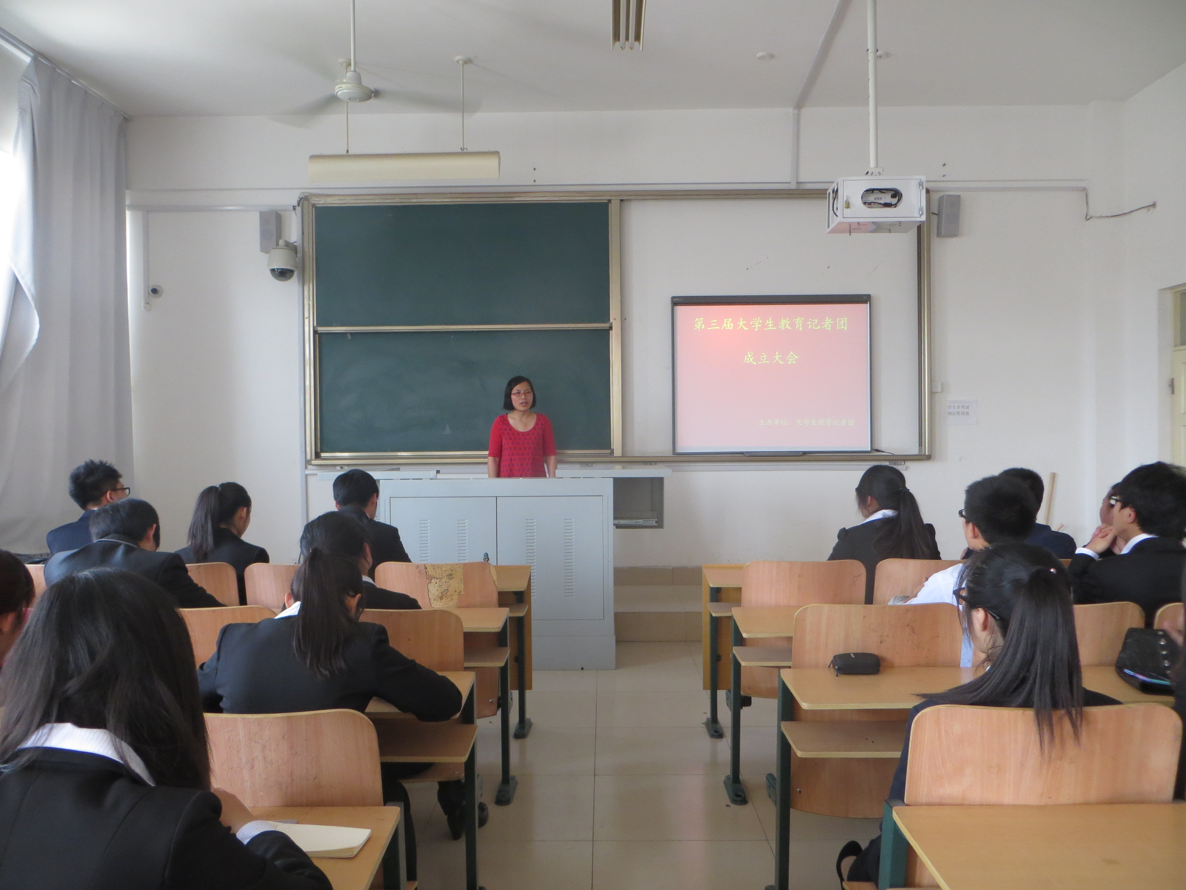 为记录我校师范类院系的教学动态,增进各二级学院交流,促进师生了解,丰富校园文化生活,5月16日,潍坊学院大学生教育记者团于天一楼7412教室召开第三届大学生教育记者团成立大会。教育记者团指导老师崔秀玲、第三届教育记者团全体成员参加了本次大会。