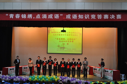 成语是中华民族精华,为弘扬中华优秀传统文化,响应读书节要求。5月12日晚,潍坊学院第十四届大学生科技文化艺术节活动之成语知识竞答赛在图书馆报告厅举办,此次竞答赛是由校团委、图书馆主办,弘德书院承办。法学院以一支4人组成的法漾年华代表队,参加了竞答赛的决赛。