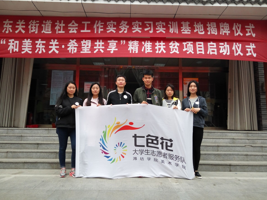春暖大地,情满人间,为弘扬慈善精神,助推慈善文化。4月7日上午,工福街社区开启精准扶贫项目。此次公益活动启动仪式到场的有项目负责人李伟、冷韶华、张克成等,参加活动的还有来自电视台的媒体记者以及由潍坊学院美术学院组成的“七色花”大学生服务队的志愿者们。