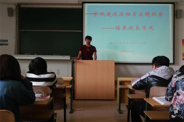 为营造学生的学习氛围,调动同学们学习的主动性和积极性,树立优良的班级学风。生物与农业工程学院14级设施农业科学与工程1班于2016年4月14日在人合楼8519教室召开了本次学风建设主题班会,主题为“培养优良学风”。