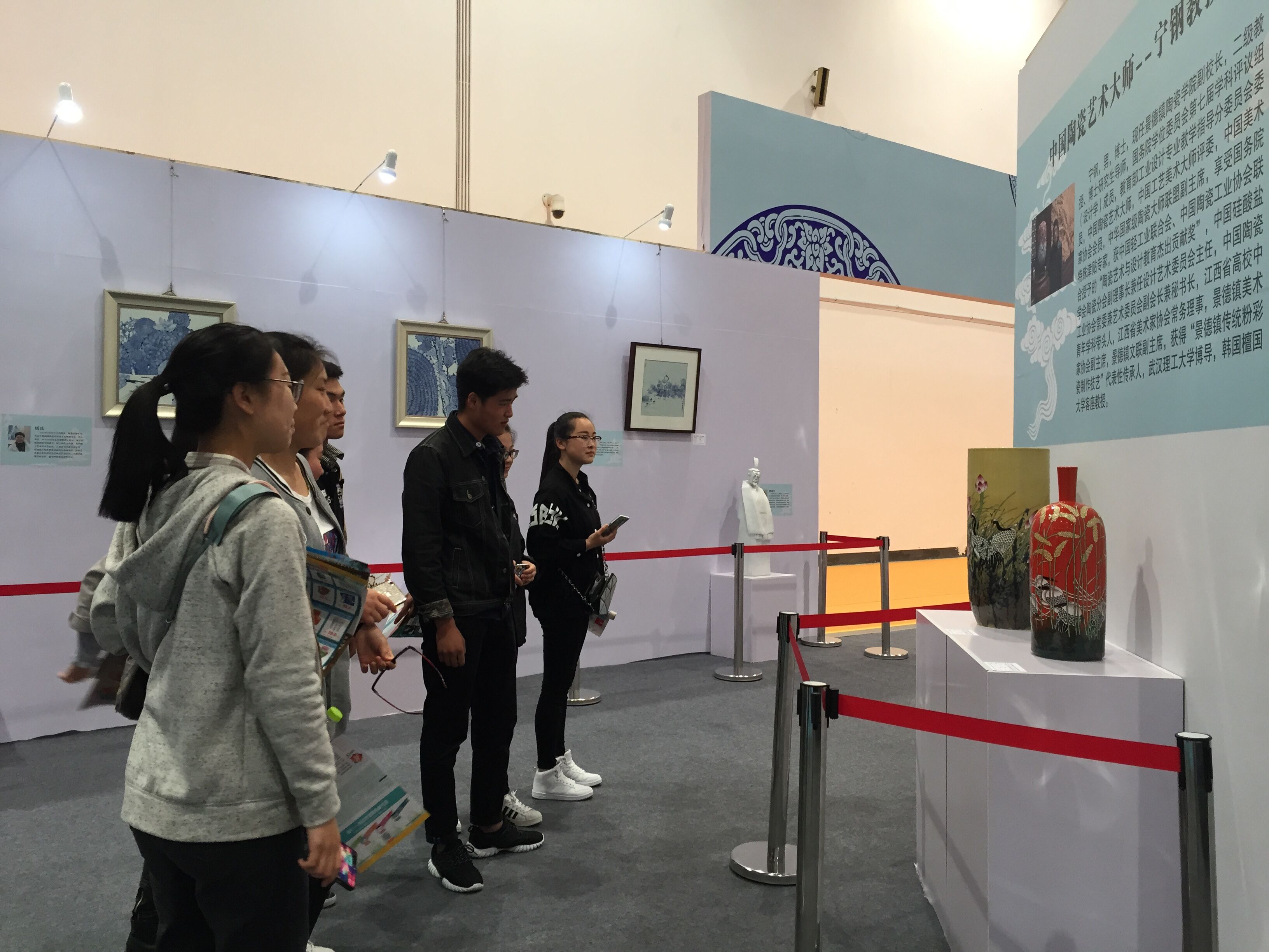 本届中国画节以“讲述文化知识,感受传世之美”为主题,展区共分为8个 展馆。进入会展中心后最先吸引同学们的是陶风瓷韵展馆,馆内陈列着风格各异的陶瓷陶艺作品,展出了宋、元、清等朝代的陶瓷碎片。走出陶瓷馆,就到了到山花 云锦展馆,那一幅幅巧夺天工的作品尤为吸人眼球。美术学四班的朱荣福同学表示:“参观前还觉得自己画的挺不错的,现在才知道这才能称为优秀的作品,以后要 多参观这样的艺术展,提高自己的视野。”视觉传达设计和环境设计的同学也找到自己专业所在的展馆——台湾文创及设计精品展,本次展出的产品有各类奇思妙想 的小型生活用品等,最令人叹服的是一款车载不倒水杯,竖直方向拿起它非常轻便,但如果想让它倒下恐怕需要提起一桶水的力气才能让它倾斜。这让同学们体会到 设计的精妙之处。作为一名设计师,不仅要有美观,更着重是否有创意并且实用。