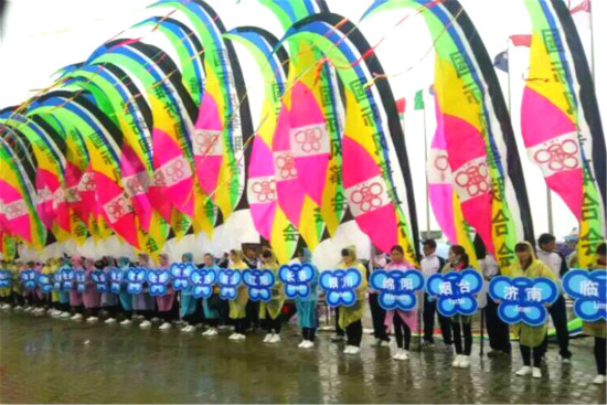 据介绍,此次风筝会竞赛项目有两项,一是最佳风筝创新赛,二是传统风筝赛。由美国、澳大利亚、新西兰等35个国家和地区的51支风筝代表队参加本届风筝会。此外,潍坊学院志愿者团队为此次风筝节担任开幕式举牌手,牌子上写着参会的海外国家与地区组织的名称,用来指引参会者。据悉,潍坊学院的志愿者们为了此次风筝会,做了很长时间的准备,并且进行了多次彩排,只为在这次风筝节上尽己所能,展示出最好的风貌。志愿者王丹宁说道:“做为一个本地人,我颇有成就感,此次开幕式持牌满足了我多年来的愿望,故而也十分感谢它。下着雨,风还那么大,观众们却兴致不减,我想这或许就是对自己家乡热爱的表现,我不枉此行。”