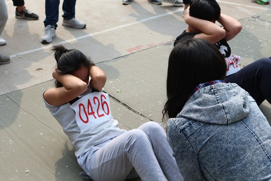 此项目是团体比赛,彰显的是运动员的团队与合作精神。赛前,三名运动员手臂抱头,做好卧姿,比赛开始,三名运动员同时开始做起坐动作。看台上的同学们为运动员们加油助威,他们的呐喊与掌声就是鼓励。一次次的起来、卧倒,不仅需要三名运动员相互配合,也需要他们的坚持和毅力。人心齐,泰山移,她们不是一个人在战斗,她们身后是北海人殷切的期望。付出的汗水会得到回报,她们不畏困难,勇于挑战,协力同心完成了比赛,用成绩向我们证明女子虽然温柔但在考验面前也能独当一面。