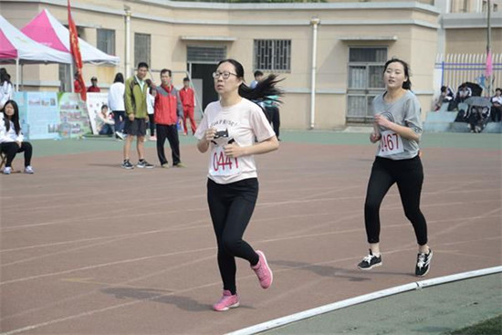 4月28日上午九时三十五分,女子八百米预赛激烈开展,运动员刘恒汝、张晓敏同学代表北海国际学院参加此次比赛。