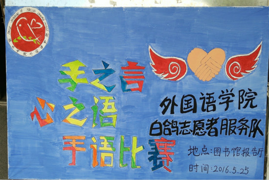 外国语学院承办此次活动的是“白鸽志愿服务队”,外国语学院白鸽志愿服务队为这次比赛做了充足的准备: 宣传刊板的制作、歌曲的选定、参加比赛人数的选拔和媒体的宣传等。