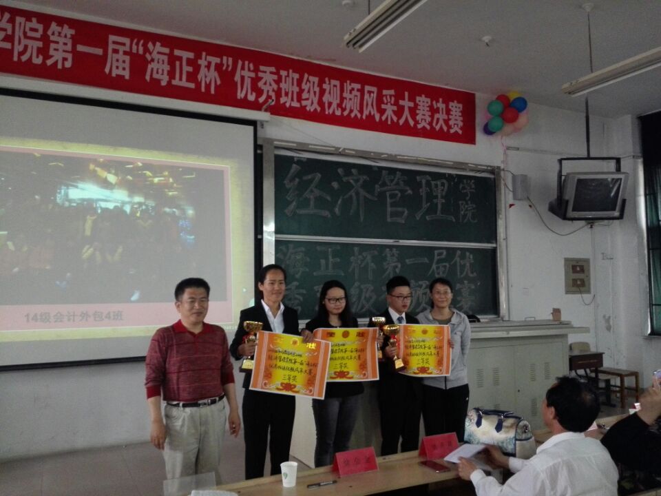 为丰富潍坊学院经济管理学院学生们的大学生活,展现班级特色,增强班集体凝聚力,潍坊学院经济管理学院大学生生活指导室于5月5日下午2时在致远楼401教室举办了经济管理学院第一届“海正杯”优秀班级风采视频大赛的决赛。