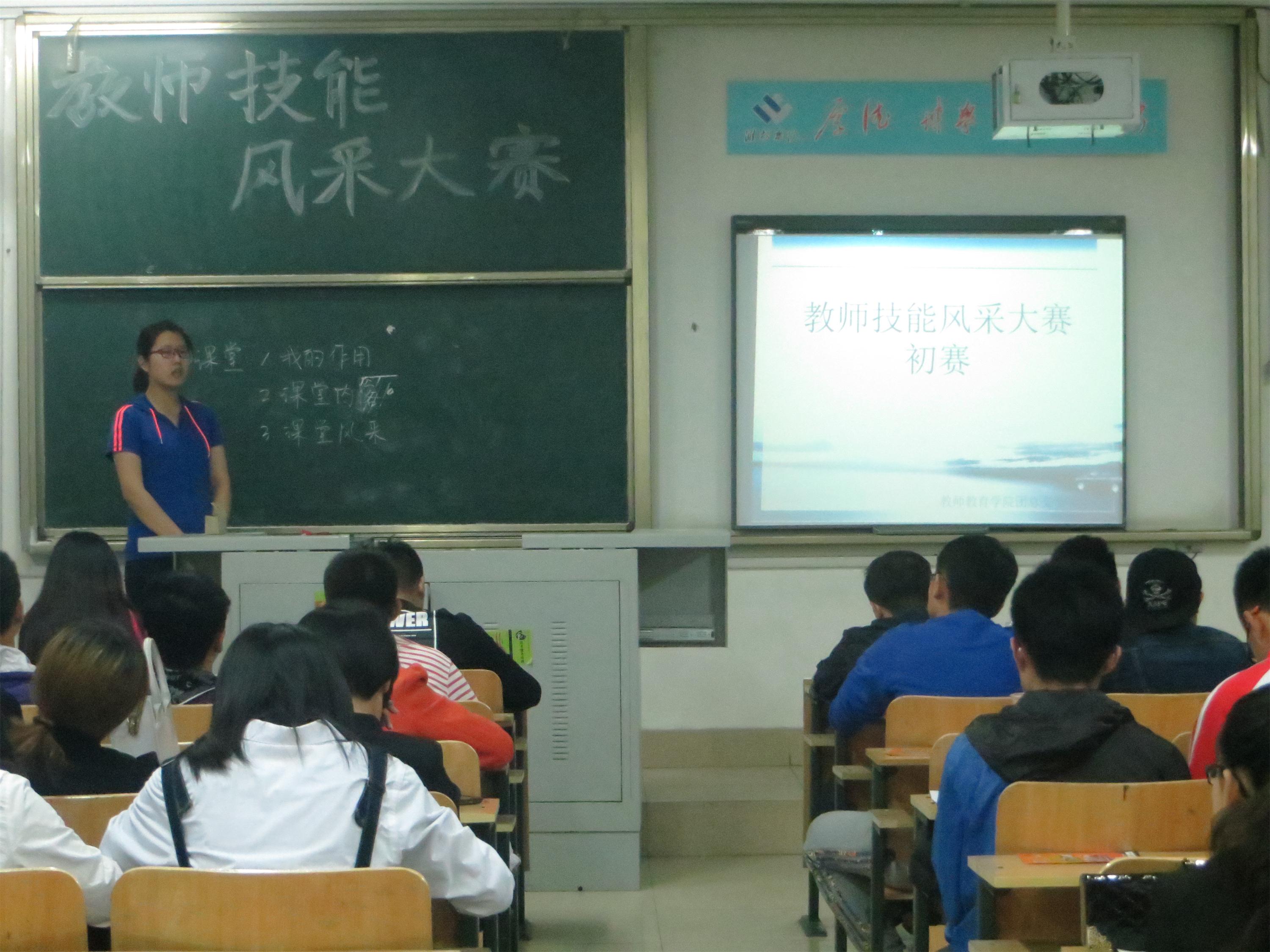 本次教师技能风采初赛的顺利进行,有利于提高同学们的口语表达能力,展现了当代大学生的青春活力,加强了师范类大学生的沟通交流,有利于师范生更好的展现自身魅力,提高专业技能素质。