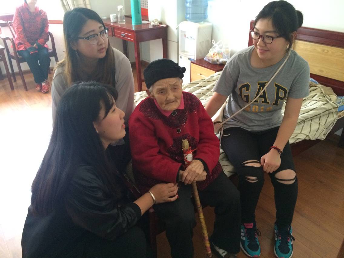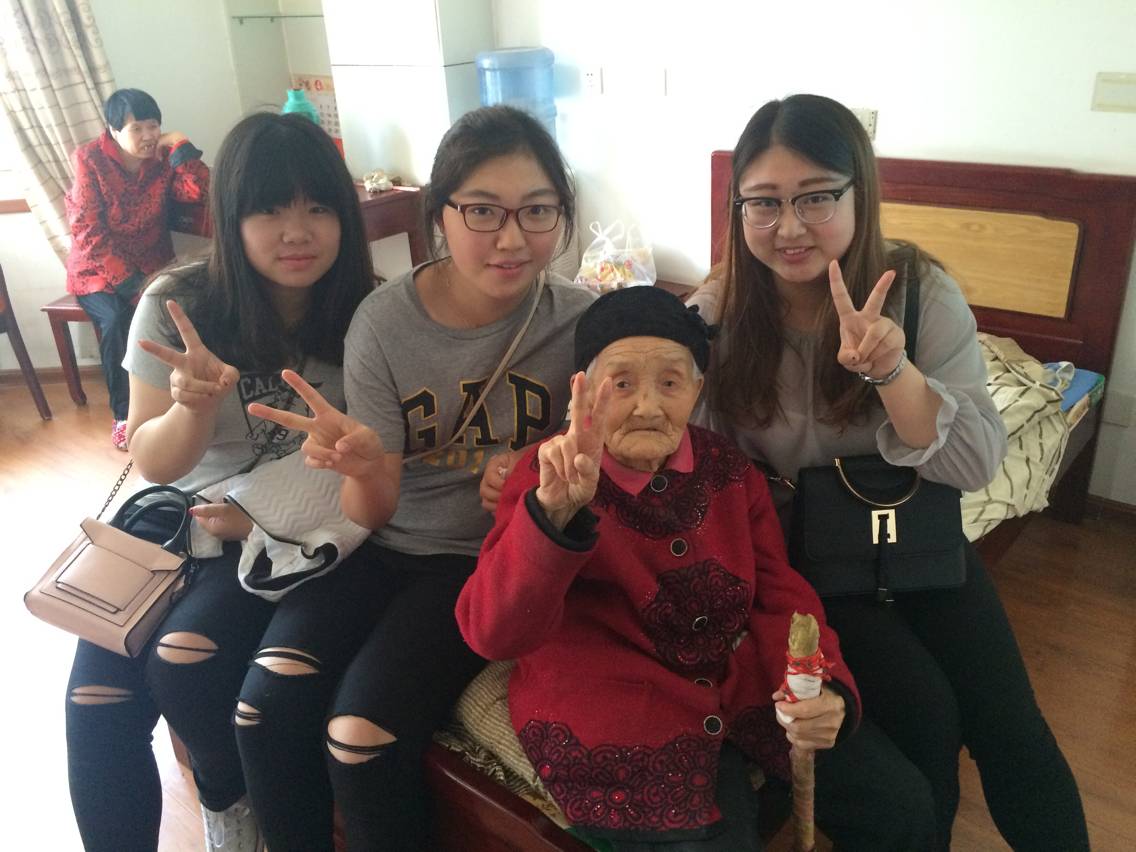 一进房间,奶奶正在看电视,看到志愿者们的到来,她瞬间露出了温暖的笑容,招呼着志愿者们快快坐下。志愿者们拉着奶奶的手,询问奶奶最近的身体状况,在得知她身体依然很好,志愿者们也露出了笑容,并细心嘱咐奶奶要注意身体,奶奶还拉着志愿者们跟她一块儿看电视。之后志愿者们拿起放在桌上的一张照片,奶奶跟志愿者们说起了照片背后的故事,还像叮嘱自己的亲孙子孙女一样告诉志愿者们要珍惜自己的学业,不要荒废时间。最后跟奶奶合影留念时,她还情不自禁的比出了剪刀手,看着照片中的自己也笑出了声。看到眼前的一幕幕场景,志愿者们也诚心的希望奶奶可以一直这样健康长寿、幸福快乐下去。