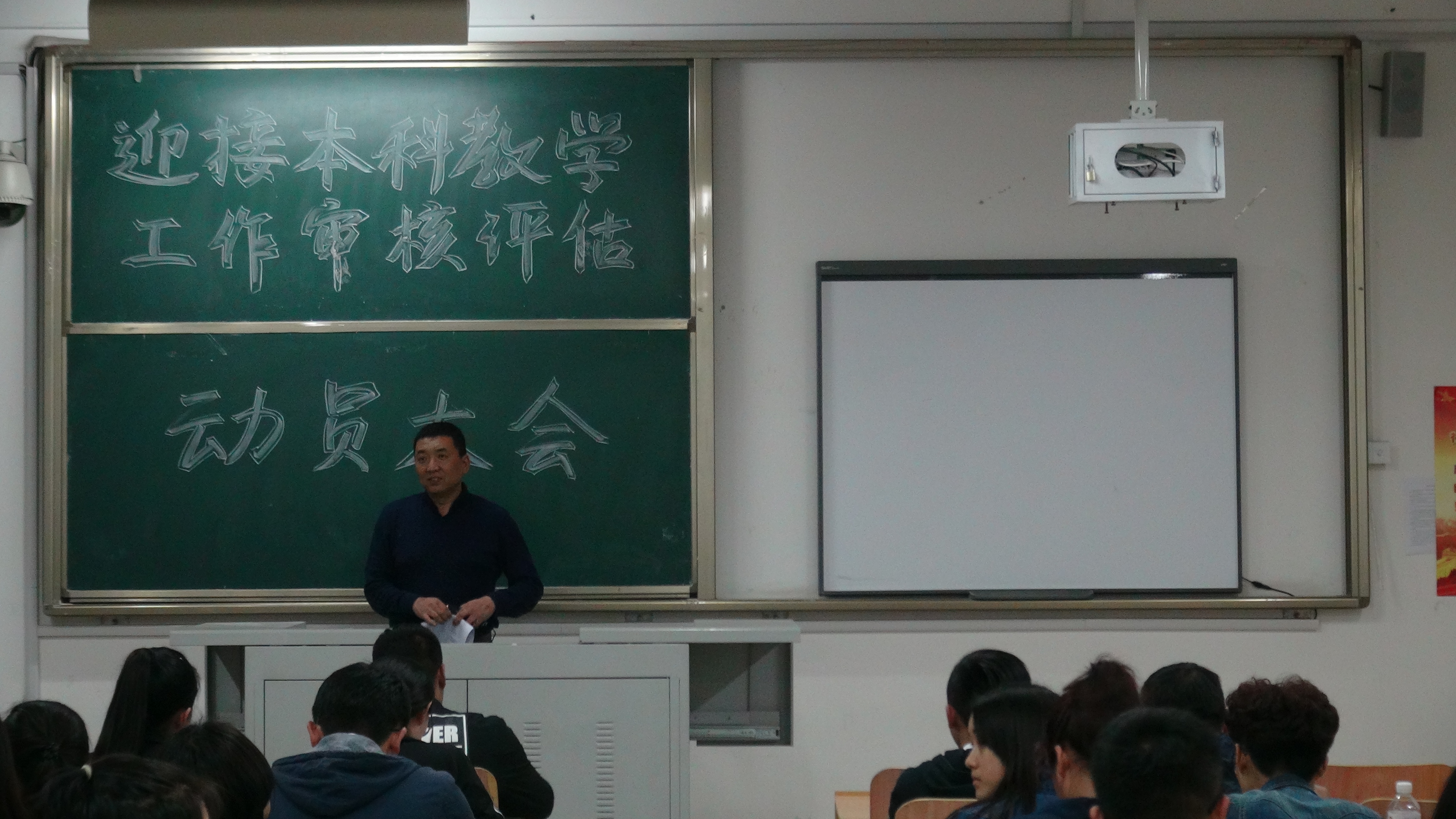 5月12日晚6时30分教师教育学院于天一楼7412号教室举行迎审核评估动员大会。参加此次大会的有辅导员办公室陈主任以及全体学生干部。