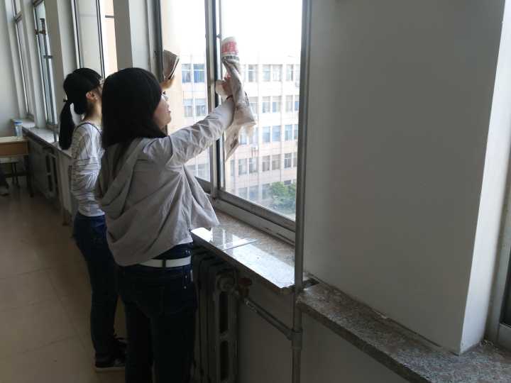 学生会主席张南斌首先为大家讲解了此次活动的意义——迎教学评估。然后便开始布置打扫工作并着重强调了安全问题。他指出,大家在打扫卫生的时候要注意安全,擦拭风扇和灯具的时候切记要先切断电源,防止意外发生。张南斌主席讲完后,由卫生部部长向兵分配各部门负责的教室。随后,各部门人员带着提前准备好的卫生用具开始了大扫除。部长们为大家分配了任务,同学们也立刻行动起来,开始认真地打扫卫生。五点半左右,大扫除终于接近了尾声。