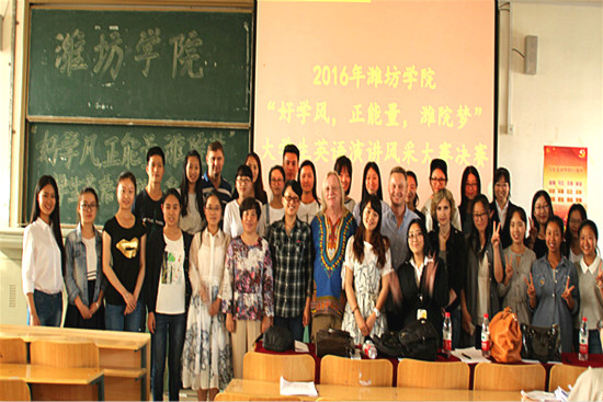 5月26日,由潍坊学院团委主办,外国语学院承办的“好学风,正能量,潍院梦”大学生英语演讲风采大赛决赛在至善楼3430教室隆重开赛。