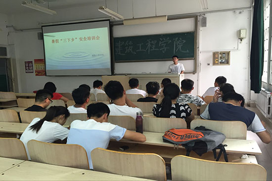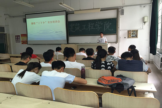 为加强暑假“三下乡”社会实践安全管理,进一步帮助学生明确安全工作的规范要求,提高学生的自律、自救、自治能力,确保暑假社会实践活动顺利、安全的完成。6月30日下午,建筑工程学院在6112教室举行“三下乡”安全培训会,建筑工程学院活动负责人张学担任主持,同时,最美山东行“建筑垃圾污染”调查实践队队员参加了此次培训会。