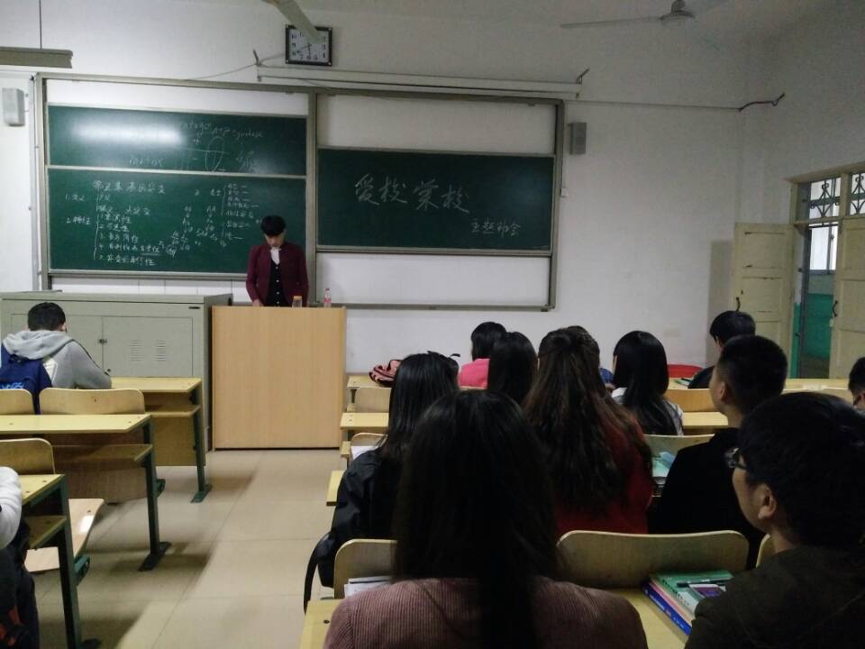 为了进一步增强同学们的爱校荣校的意识,培养同学们的集体荣誉感。2016年10月28日晚上八点,生物与农业工程学院的2015级种子科学与工程在人合楼8521教室召开了以“爱校荣校”为主题的班会。班会由班长姜文栋主持。