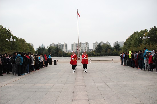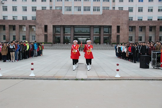 清晨的风带来阵阵寒意,行政楼广场上弥漫着严肃的氛围,参加此次升旗仪式的学生都庄严等待仪式的开始。上午7时整,升旗仪式正式开始。国旗护卫队迈着整齐划一的步伐迎国旗走到旗杆下,准备就绪,嘹亮高远的《义勇军进行曲》在广场上空奏响。全体师生行注目礼,神情庄重肃穆。秋风凛凛,鲜艳的五星红旗迎风招展。接下来,物电学院总支副书记贺志波就“弘扬潍院精神,建设优良学风”发表讲话。紧接着,物电学院学生会主席王一鸣作为学生代表发言,他以一名潍院学子的立场,表明学风建设对大学生的重要性。最后,各位领导、师生有序退场,本次升旗仪式圆满结束。