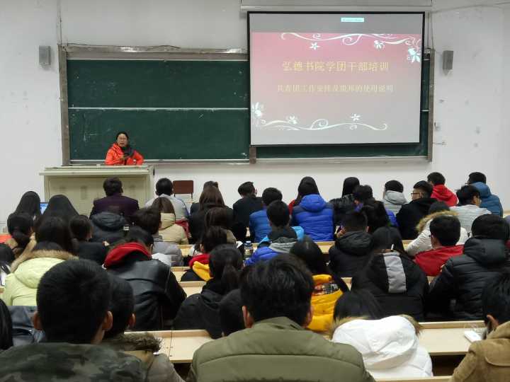 11月22日晚上7点,弘德书院学团干部培训即共青团工作安排和微邦的使用说明会议在六号楼6101教室隆重举行。出席本次会议的有弘德书院团总支书记葛红丽、团总支副书记李艳霞、弘德书院第三届副主席赵珊、弘德书院第四届学生会主席团成员、各部门部长及弘德书院各专业班长和团支书。