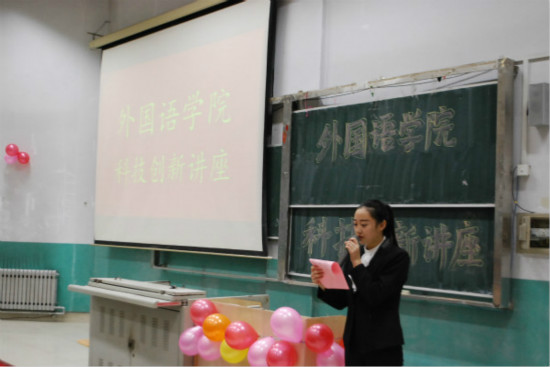 2016年11月27日晚七点,外国语学院科技创新讲座在至善楼3101教室举办。此次活动的目的是激励大学生科技创新。出席此次活动的嘉宾有大学生科技创新中心主席孙正林,副主席王静,外国语学生会主席张欣,副主席王晓洁,大学生科技创新中心竞赛组织部部长魏丽华,学术活动部副部长李锦绣,项目管理部副部长孙昊,外联实践部副部长迟会凯。