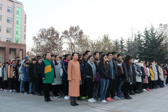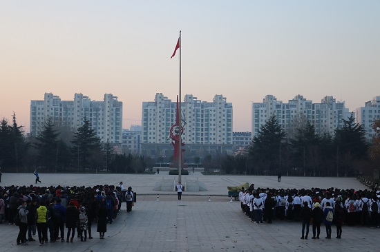 为加强学风建设,积极学习和弘扬传统文化,把弘扬传统文化融入到我院学生工作中,引导大学生树立优良学风,培养刻苦钻研、勤奋好学、持之以恒的学习精神。潍坊学院经济管理学院于2016年11月28日在行政楼广场举行升旗仪式。
