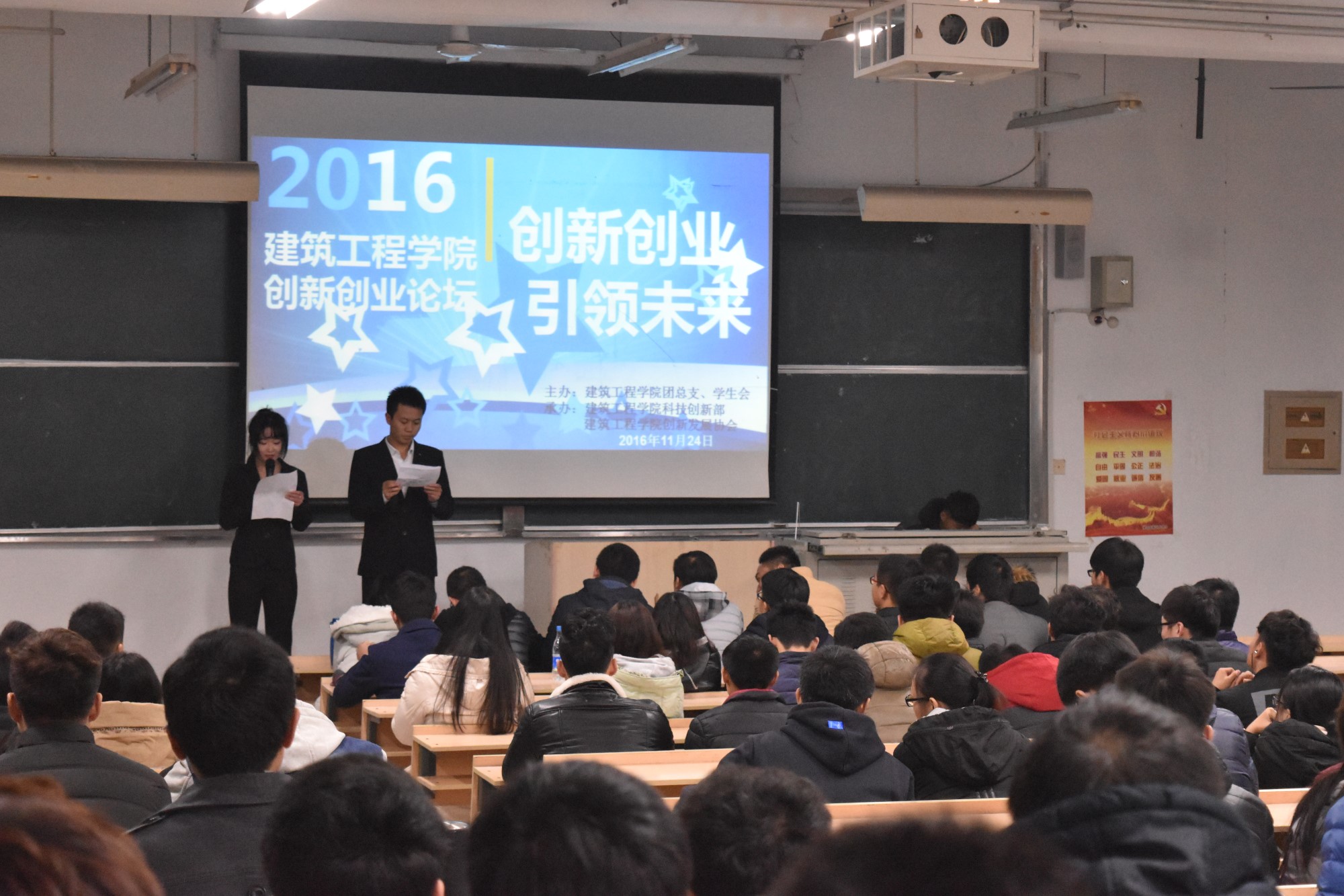 11月24日晚6点30分,建筑工程学院第三届科技创新论坛在6102拉开帷幕。此论坛由建筑工程学院团总支、学生会主办和建筑工程学院科技创新部联合承办。