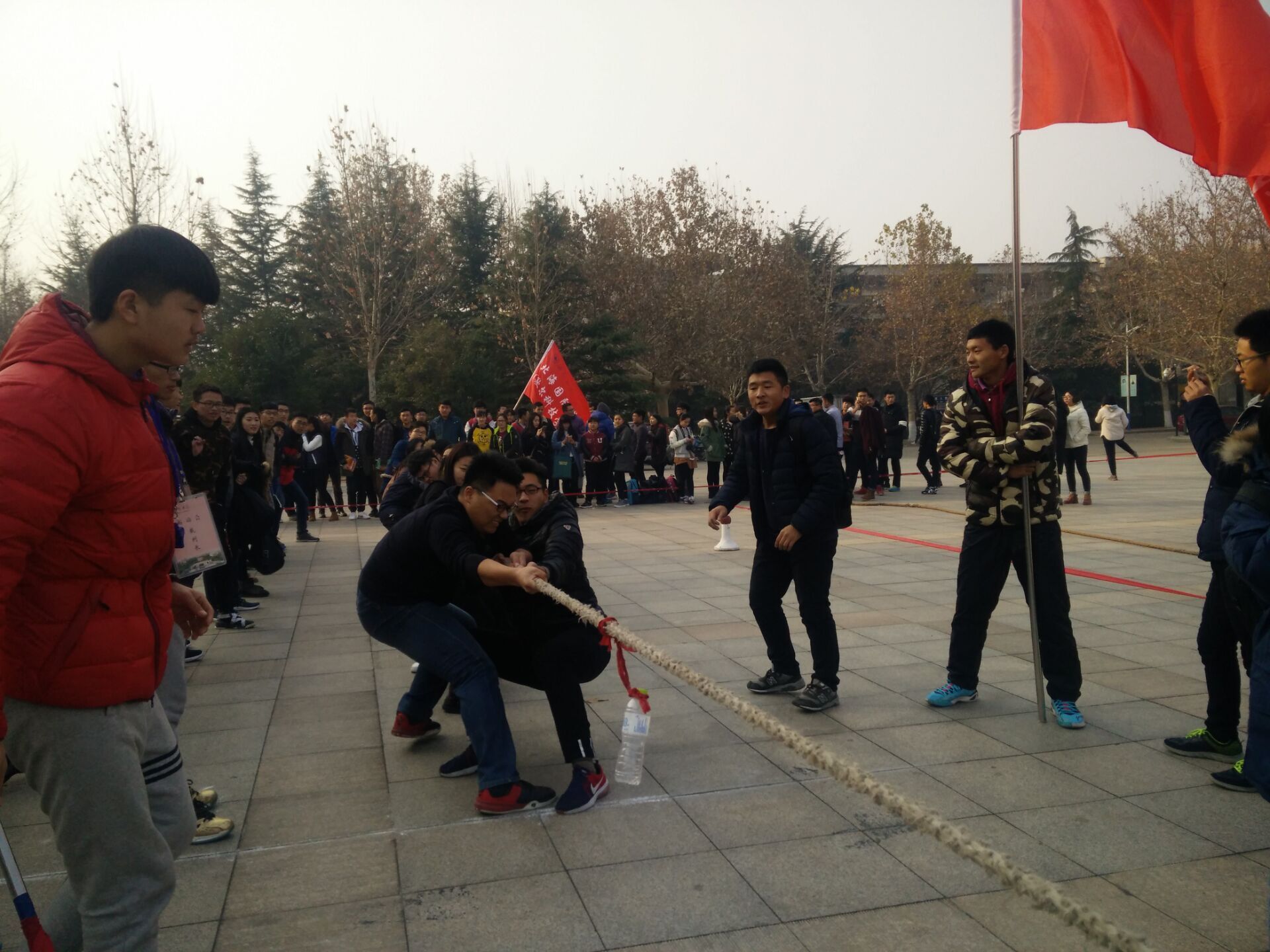 为纪念12·9运动,增强学生们的体质,培养工作上奋勇拼搏的精神,潍坊学院团委联合潍坊学院学生会和体育学院学生会于2016年12月8日在行政楼后广场举行了拔河比赛。建筑工程学院的代表队积极参加了此次比赛并获得了三等奖的优异成绩。 22支代表队雄赳赳,气昂昂的进入场地,向裁判、观众致谢。随着裁判的一声哨响,首先被抽到的两支队伍开始了激烈的交锋,一个个大力士们,使出了浑身的解数,只见粗糙的麻绳崩的紧紧的,你来我往的进行着。场边的啦啦队也卖力的吼着加油,一二!一二!时间对于跟随的记者感觉是白驹过隙,但是对于场上的队员来说好比是度秒如年,每一秒都像是在用生命去拼搏,去创造奇迹!转眼之间比赛来到了冠亚军的争夺之战,虽然双方在之前的比赛已经用尽了力气,肉体上懒散了,但他们敢于拼搏,贵在坚持,团结一心的精神此刻依旧感染着整个场地!经过一段艰苦的决战,建工代表队荣获三等奖。虽然没有卫冕,但他们齐心协力为荣誉而战的精神值得我们为之祝贺,我们应该为每一名参赛的队员点赞。 拔河比赛是短暂的,但其中的精神是永恒的!团结一心,让建工学子的心拧在一股绳上;强健体魄,展现建工学子的飒爽英姿;勿忘国耻,让每一个人都能铭记12·9纪念日!