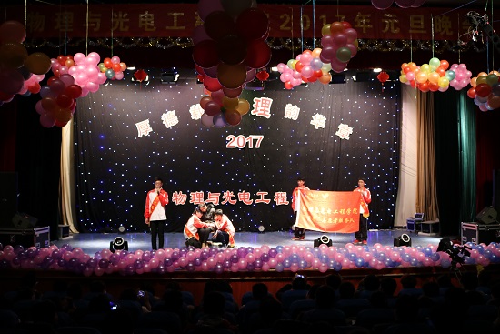 四季新元旦,万寿初春朝。2016年12月11日,物理与光电工程学院举办的“厚德载物,理韵华章”元旦晚会于图书馆报告厅上演,激情的歌唱、火热的舞蹈、风趣的小品、动人的话剧……各类节目轮番上演,不禁让人眼花缭乱、热情饱满。现场气氛异常热烈,掌声、笑声不绝于耳。物电学院党总支副书记贺志波、学生工作办公室主任张芳芳、金波昌博士及其他物电学院教师出席了此次晚会。