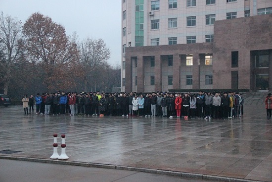 为了提升体育学生教育教学水平,更好服务奉献国家社会,2016年10月12日清晨在潍坊学院行政楼前广场举行升旗活动。参加的人员有体育学院领导及各年级辅导员还有14、15、16级全体师生。