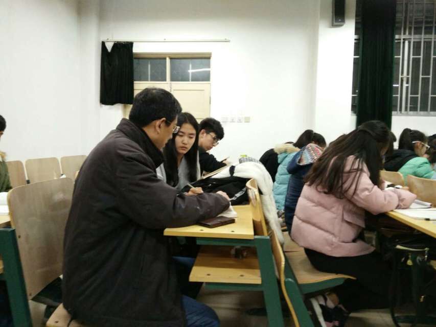 晚自习铃声一响,王儒智老师准时来到教室,走到同学们身边观察同学们的学习状况。见到老师的到来,同学们纷纷向老师请教自己在课堂上没有听懂的内容和不会做的习题,王老师耐心的一一讲解并强调要注意的做题细节和做题技巧。随后,他在教室后面的空座位坐下研究习题,有问题的同学下座位请教,老师再进行讲解,同学们认真聆听并和老师一起讨论,解决了疑难问题的同学开心的向老师表示感谢。为同学们讲题之余,王老师不忘用笔记下同学们反应出的不理解的知识点内容,并做出强调。他说:“做题练习时,也要注意对概念细节的理解和方法的掌握,去对每章内容进行总结,分析题目类型,会使学习变得更有效。”这无疑提高了同学们期末复习的积极性和自信心。