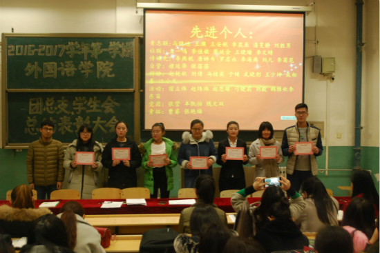2016年12月18日晚,外国语学院团总支、学生会总结表彰大会在3237教室召开。学生会全体成员参加了此次会议,大会由舞蹈队的舞蹈展示开场。