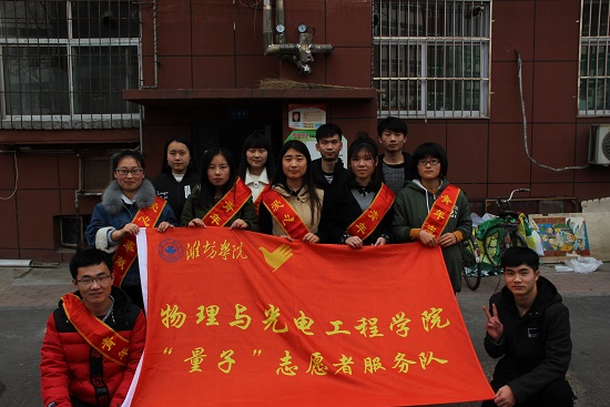 2017年2月17日星期五,物理与光电工程学院一年一度的大学生寒假社会实践活动在苇湾社区启动。活动旨在以“增加社会经验,提高实践能力,丰富假期生活”为契机,充分发挥学院专业特色,走理论与实践相结合的道路,提高大学生的综合素养。