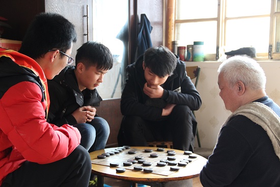 志愿者们敲门后,听到宋大爷高兴地应答声。因为不止一次到来,宋大爷和志愿者也已经熟悉,待志愿者全部进屋之后,宋大爷二话不说拿出象棋,期待着“大杀四方”,志愿者们也爽快的答应。下棋的同时,宋大爷也不耽搁与女生们聊天,温暖的话语萦绕在耳边,让早春的太阳驱走冬日的寒意。打好招呼后,部分女生又把床铺和客厅进行了整理,还贴心的烧满开水,倒了垃圾。纵使辛苦,汗水滴淌在额头,但是大家说说笑笑,你一言我一语,不一会的功夫,便把屋子打扫得干干净净,映照出屋子里的温暖。