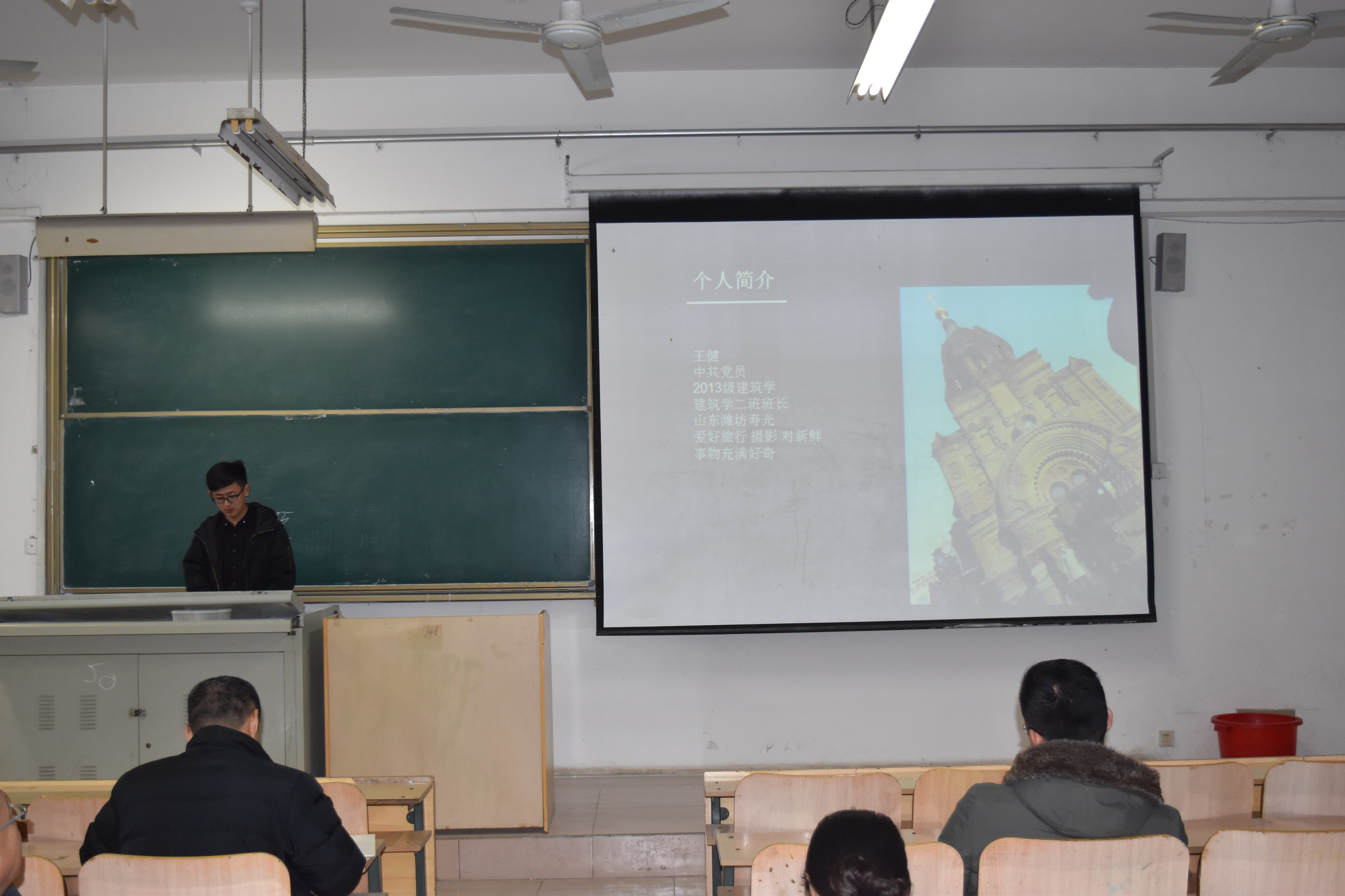会议开始,牛老师对本次评选做了简单的介绍,并分发给各级辅导员参赛人员的综合调查表及评选表。学生通过上台演讲的方式表达自己过去的成就及参加的比赛和活动。台上的同学们没有丝毫怯场的表现,他们满怀信心用简洁的语言表达着自己。他们都是建工学院的优秀学生,获得过大大小小的奖项,凭借自己的努力与才华走到今天。各位老师通过每位参选人员的演讲介绍及综合调查表进行评估,经过一番讨论,最终确定了了推荐人员名单:2014级土木春季班闫帅、2013级建筑学专业的王健同学、2014级工程管理专业的高群同学。