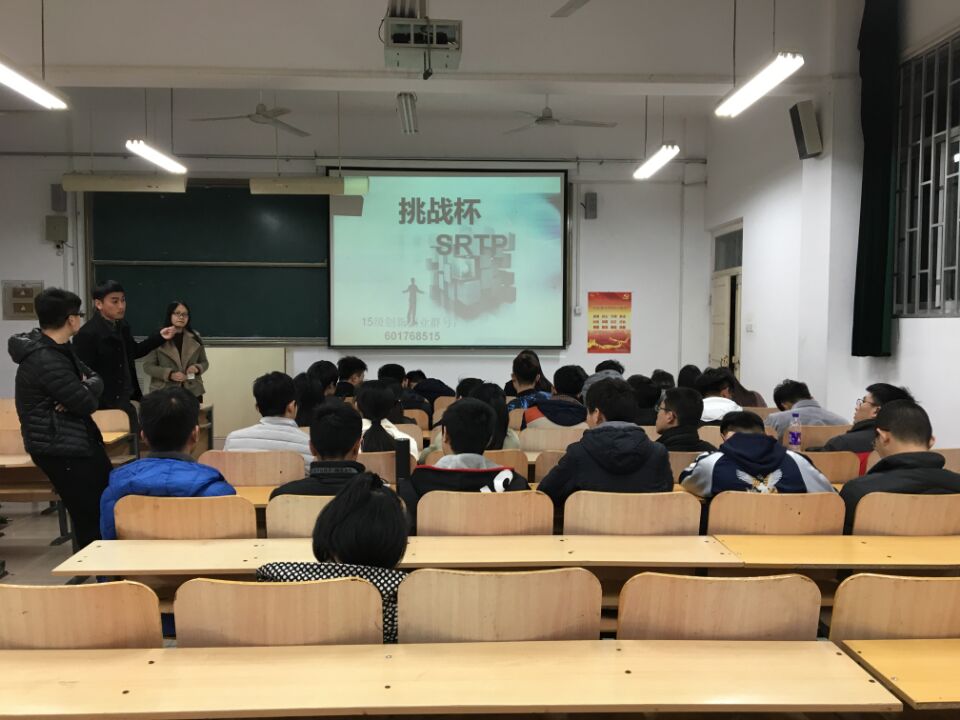 会议伊始,高群通过精美的PPT介绍了SRTP的具体事宜,她通过往届优秀作品分析了不同专业的研究方向。现场互动环节达到高潮,同学积极地提出自己的想法与疑问,仅仅15分钟提出了许多新颖的想法,赵树朋学长也耐心为大家讲解学术理论方面的问题。最后,闫帅作了简单补充,他强调这次SRTP比赛需要3-4人组队,一名指导老师,并简单介绍了一下比赛的奖励制度。在宣传SRTP的同时,高群同学也着重提到了大学生“挑战杯”,“挑战杯”系列竞赛是全国最具代表性、权威性、示范性、导向性的大学生竞赛。这两项活动对学生的考研与公务员方面有着非同寻常的意义。