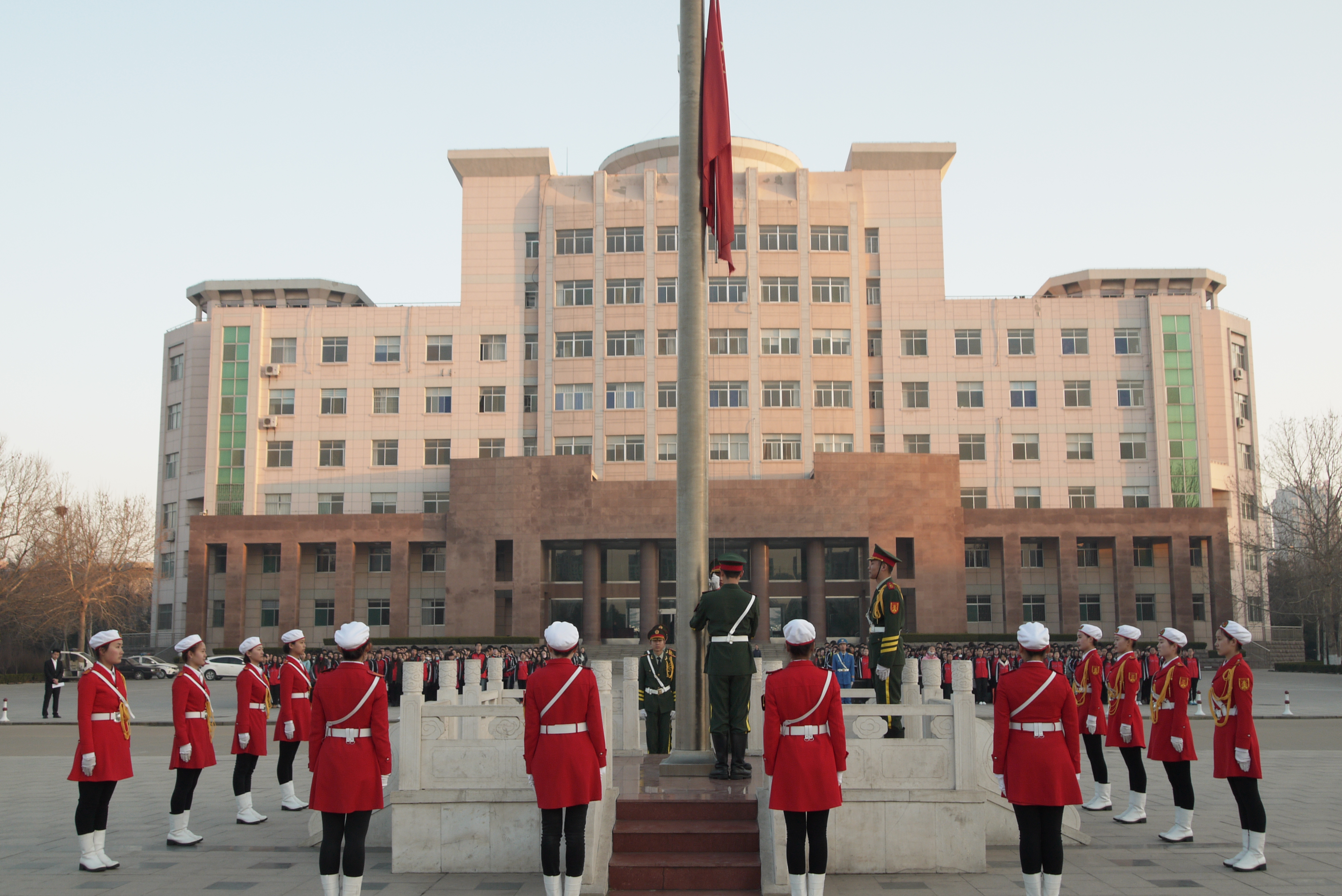 出席本次升旗仪式的领导老师有数学与信息科学学院党总支书记周莹、副书记郑栋鹏,弘德书院学业指导办公室主任史玉华、团总支书记葛红丽,数学与信息科学学院学工办主任王秋霞、团总支副书记王鑫莉、2014级辅导员吕静以及2015级、2016级全体同学。