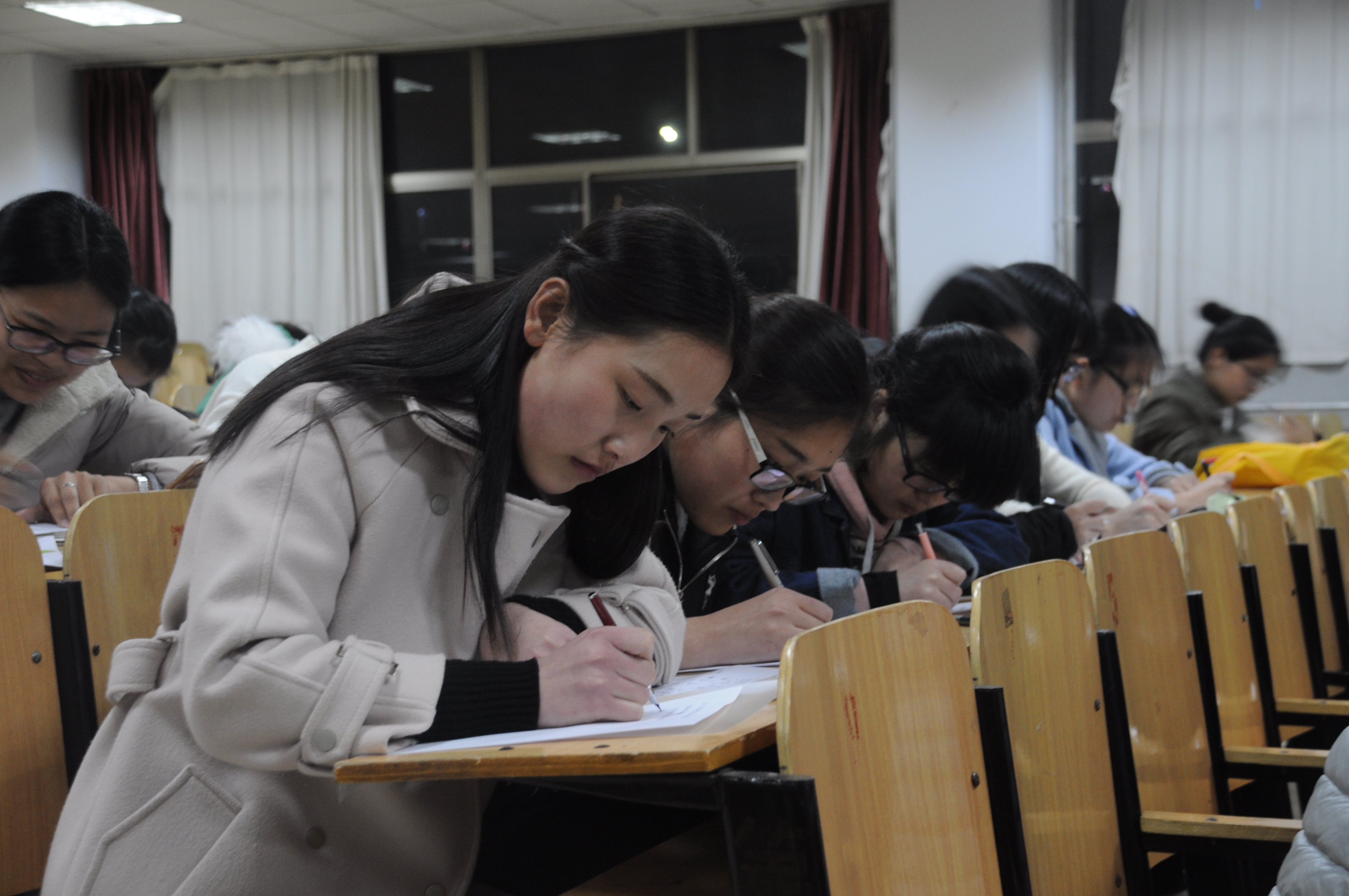 朝书暮画,斯如骑战马。为了增强校园文化氛围,使笔墨传薪,让经典书法走进校园,2017年3月14日晚上七点,由潍坊学院教师教育学院主办,未来教育者协会承办的第二届“书写经典,传承文明”写字比赛初赛硬笔赛场,在安顺校区阶梯教室如火如荼进行。八十余名学生参加本次比赛,一场比赛,卧虎藏龙齐展露锋芒。