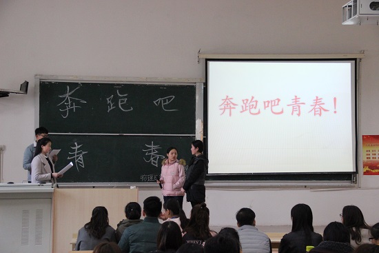 为了培养学生灵敏的时代嗅觉和个性化的创造能力,尽显潍坊学院学子的青春风采,增强同学们迈向成功的信心。2017年3月12日下午2点,物理与光电工程学院在5109教室举行了“奔跑吧!青春”活动。出席本次活动的有物电学院的副主席孙正林、黄振滢、吕浩、外国语学院副主席李彤等,以及物电学院和外国语学院的部分学生会成员。