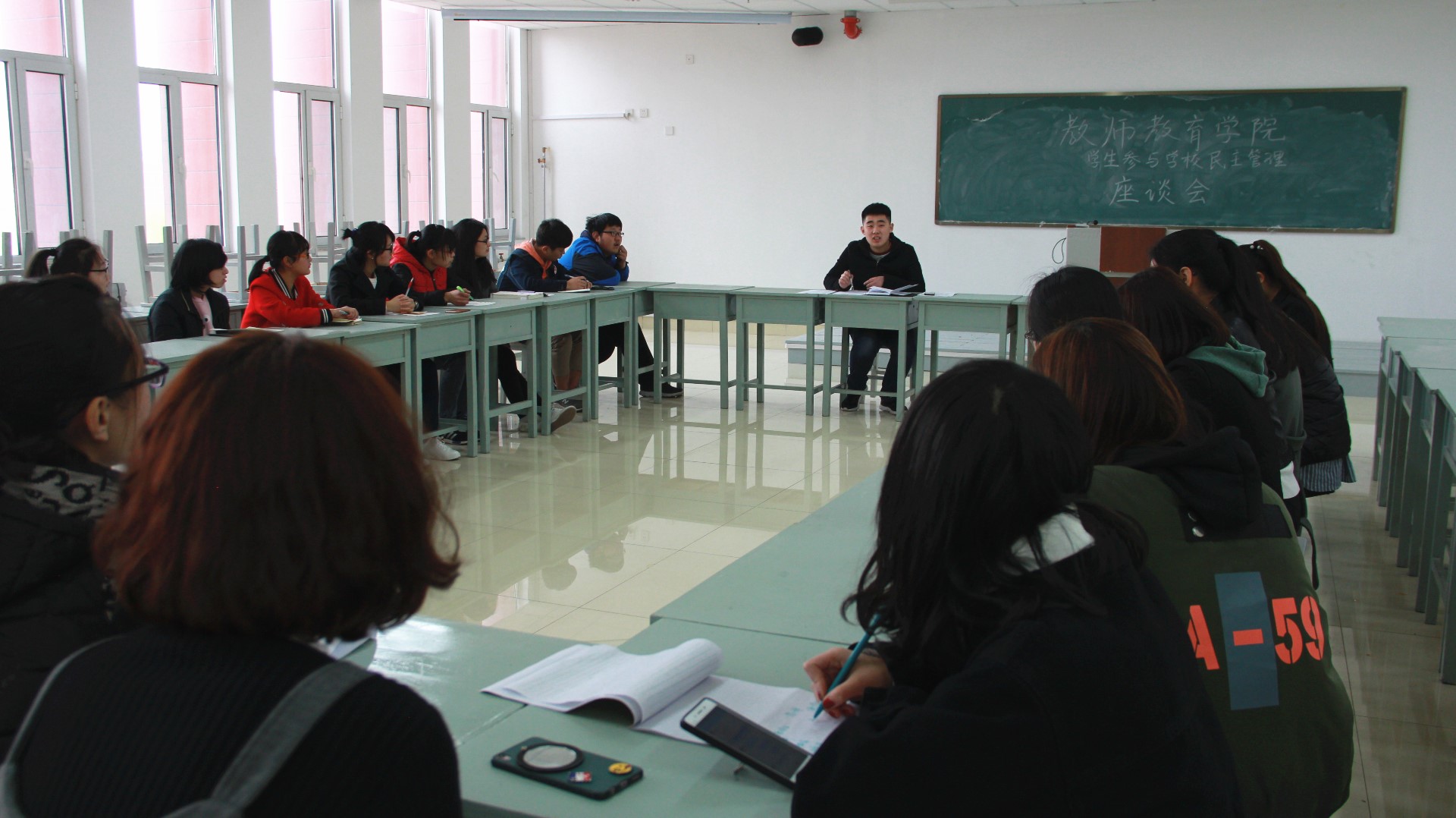 为了进一步加强校园民主建设,深入了解学生学习状况以及学生对学院发展的意见和建议,发挥学生参与民主管理的作用,2017年3月23日下午,教师教育学院召开了“学生参与学校民主管理”座谈会。教师教育学院15、16级各班学生代表参加此次座谈会。