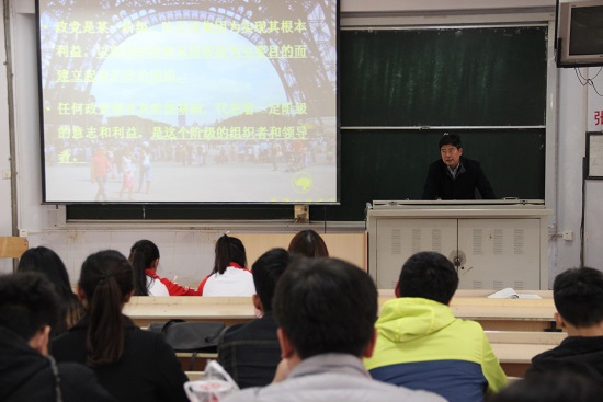 仲书记以中国共产党的性质和党的根本宗旨为出发点展开话题,告诫学生们要牢记“两个先锋队,一个核心,三个代表和一个最终目标”的党的性质。紧接着,以毛泽东、邓小平和习近平的领袖名言引出党的根本宗旨:“为人民服务”,用张思德的案例加强同学们为人民服务的意识。另外,要做到为人民服务,就要坚持群众路线,落实“以人为本,执政为民”和坚决反对腐败。上课期间,仲书记结合以前发生的真实案例,正反对比,让同学们深入思考与理解,真正了解中国共产党的性质。