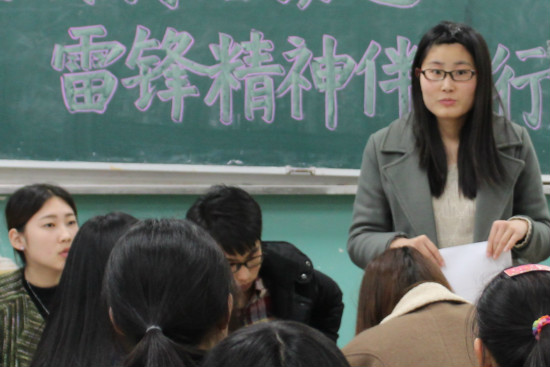 为更好的弘扬学习雷锋精神,3月26日晚上六点,外国语学院团总支、学生会在至善楼3233教室举行了雷锋日活动之雷峰精神伴我行分享会。外国语学院团总支副书记、学生会主席张欣,各副主席及各部部长、副部长参加会议。