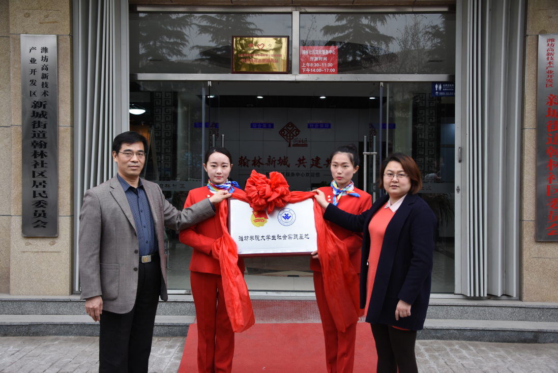 为发扬友爱、互助、进步的时代新风尚,培养同学们吃苦耐劳、奉献自我的精神,潍坊学院传媒学院大学生社会实践基地揭牌仪式于3月24日下午在新城街道翰林社区举行。传媒学院党总支副书记刘先学,团总支书记杨颂与传媒学院三色光志愿者服务队的同学们参加了本次活动。