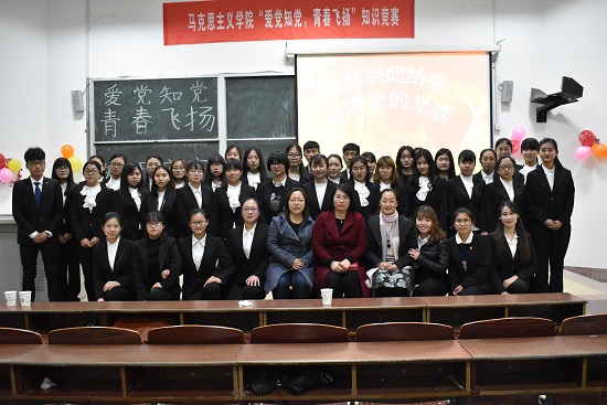 为迎接第九届大学生宿舍文化节的到来,学习贯彻落实习近平总书记在全国高校思想政治工作会议上的重要讲话精神,营造浓郁理论学习氛围。2017年3月30日晚19:00,马克思主义学院在齐贤楼 2109教室举办“爱党知党,青春飞扬”知识竞赛,本次比赛的评委老师有马克思主义学院中国化马克思主义教研室邹丽萍老师、形势与政策教研室赵纪梅老师和马克思主义学院学工办主任赵静老师。