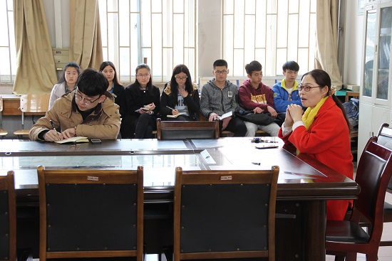 首先,张老师向大家宣布了自己获得去北京进修三个月资格的好消息,张老师希望此次进修能够为学生管理工作打开新的局面,也希望在她不在的这段时间里学生会干部们能够处理好各项工作。当然在做好学生会工作的同时学习更为重要,要始终把学习至于第一位。2013级学生考研已经结束,物电学院的考研率再创新高,张老师希望同学们能够确定自己的目标,再接再励,再创佳绩。虽然如今的考研政策有所改变,但同学们要做到不畏惧,不退缩,打好专业课的基础,增强自信心,虽身在二本院校,但要有985、211等高等院校的气势。另外张老师也鼓励大家平时多参加一些竞赛等活动,把功夫做在平时。并就此次的挑战杯比赛中物电学院取得优异成绩表示祝贺。