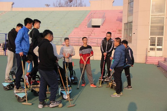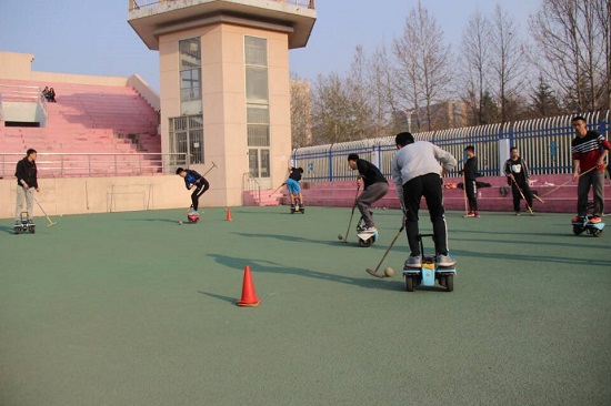随着科技的发展,一种新兴竞技运动平衡车马球逐渐走入大众的视野。2016年在北京市海淀区举行的中国中关村机器人科技运动会中,潍坊学院体育学院创新队荣获冠军,求是队获得亚军。2015年在常州武进区举行的神州通信杯机器人运动大赛中,潍坊学院体育学院马球二队获得冠军,马球一队获得第四名。为了迎接本次机器人运动大赛的到来,在机器人大赛中获得更好的成绩,马球队再次集结在田径场,全心投入每天的训练 ,马球队每次训练时都会有一个身影在旁边指导,那个身影便是体育学院团总支书记卢永波。今年,体育学院马球训练队不输往年,田径场的平衡车上每天都有他们挥汗的身影。