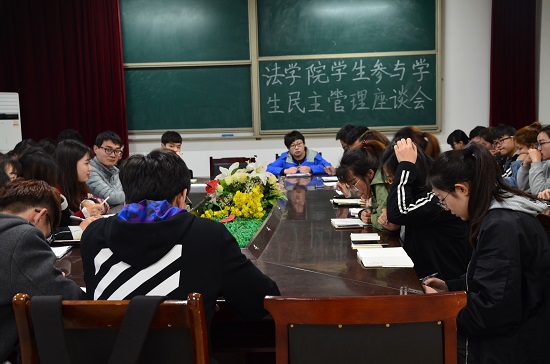 为更好地发挥学生会的作用,健全学生权益代表和维护机制,在学校改革发展阶段为广大同学做好充分的服务,积极响应潍坊学院学生会征集“学生参与学校民主管理”提案的通知。法学院学生会特于4月5日下午6:00,在人合楼8314会议室召开了以“参与学校民主管理”为主题的座谈会。法学院第17届学生会部长级以上全体成员参加了此次会议。