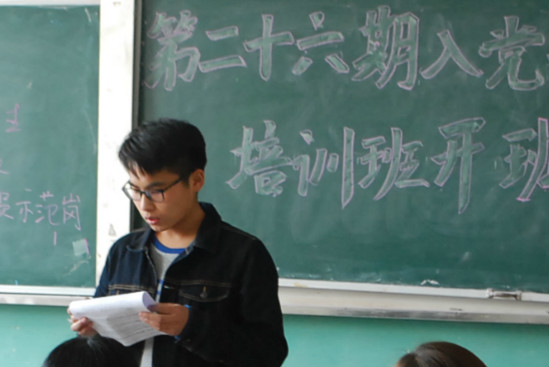 为适应党的形势与发展要求,对入党积极分子进行培训教育,确保新党员质量,使入党积极分子提高思想道德水平,深化对党的认识,4月9日下午4点,外国语学院第二十六期入党积极分子开班仪式在3233教室举行。